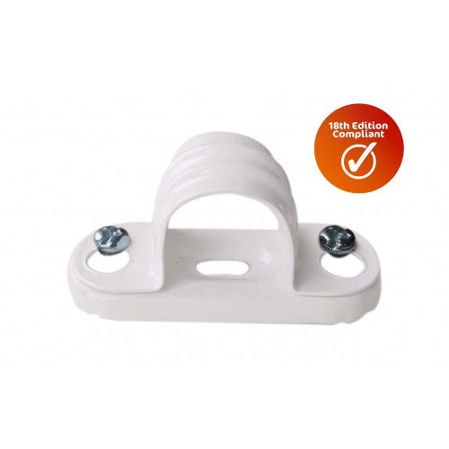 25mm | *BLACK* | *WHITE* | Steel Spacer Bar Saddle to meet BS 7671:2015 amendmentÍs. For use with PVC conduit - 100 per pack
