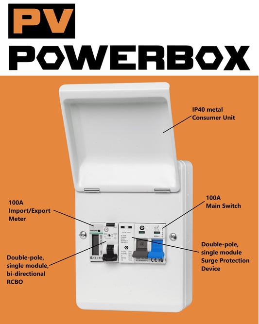 PV POWERBOX IP40 Metal Solar / EV Consumer Unit with Import/Export Meter, RCBO and SPD