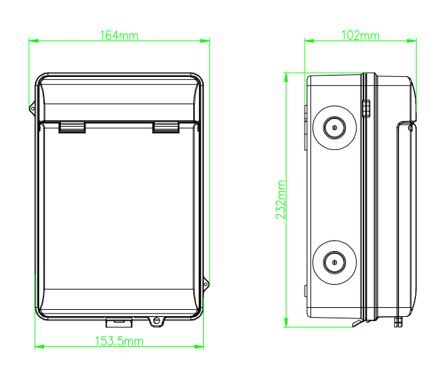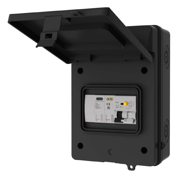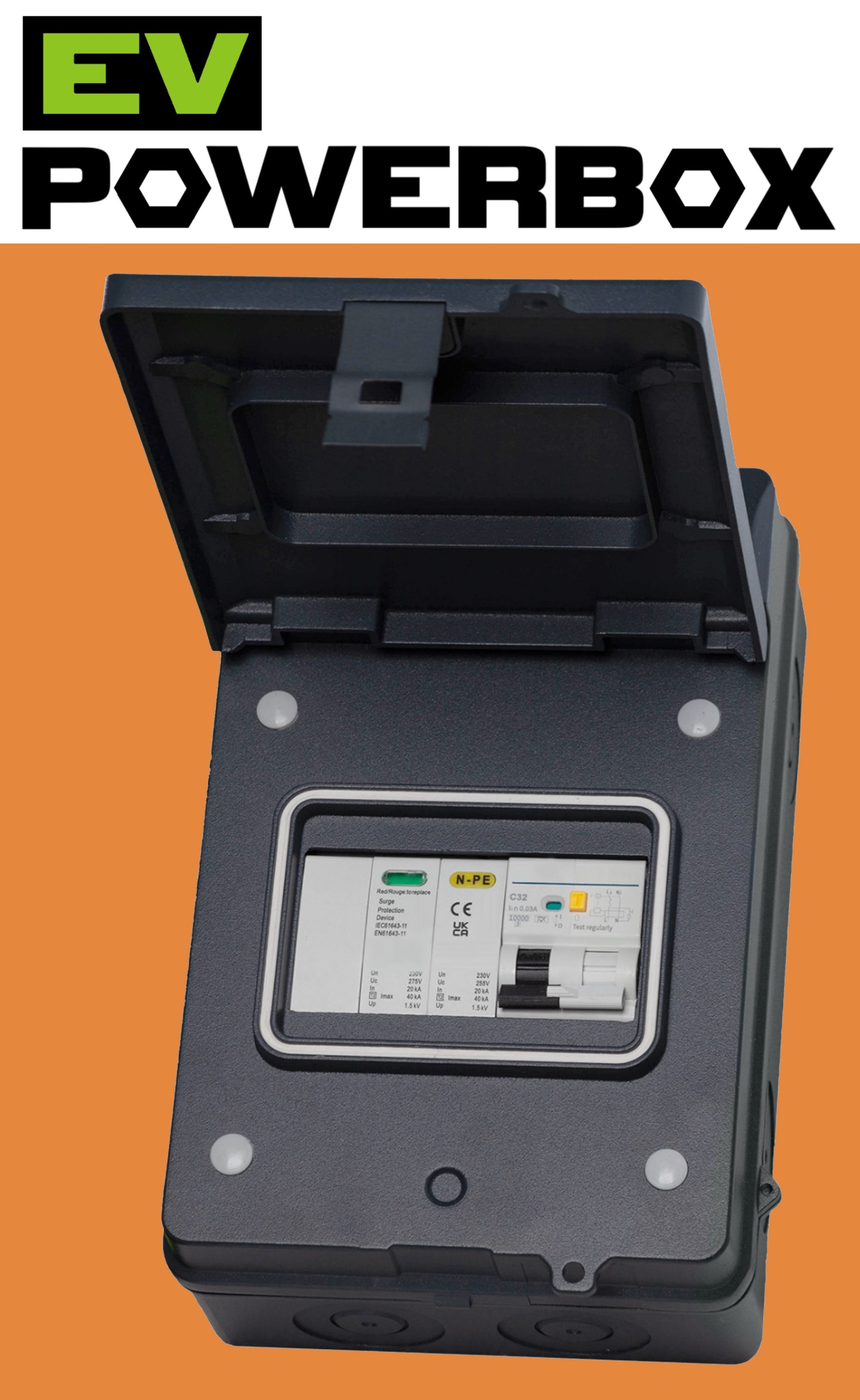 Powerbox IP65 metal black enclosures are ideal for electrical vehicle outdoor installations. Supplied with an A- type double-pole bi-directional RCBO which detects AC and pulsating DC earth leakage up to 6mA.
