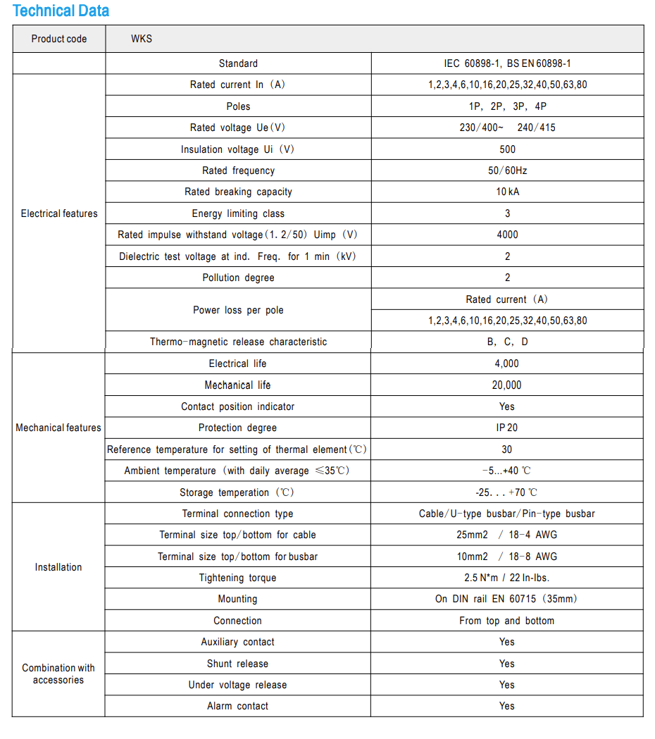 WKC range circuit-breakers are used in domestic installation, as well as in commercial and industry electrical distribution systems.